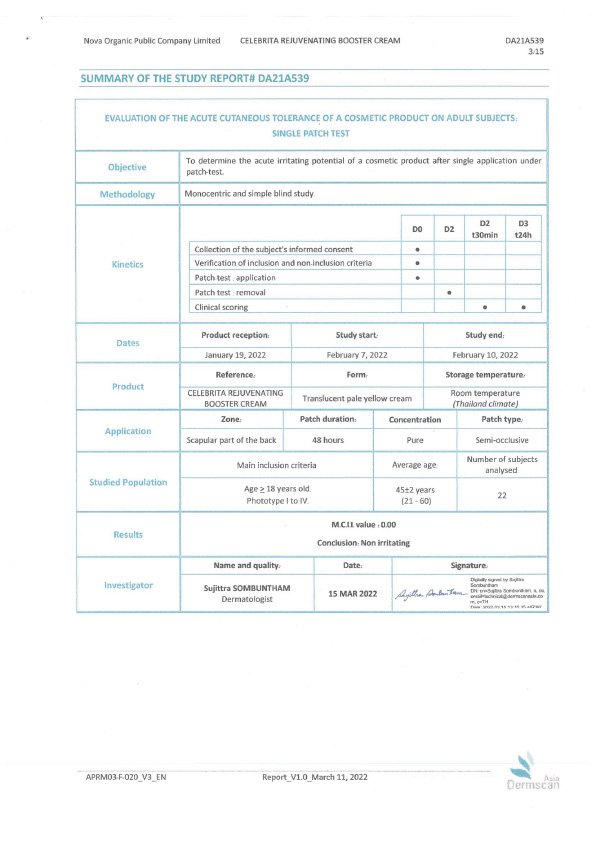ผ่านการทดสอบความระคายเคืองกับสถาบัน Dermscan Asia